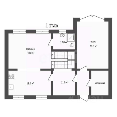 На первом этаже расположены: кухня 31.7 кв.м., гостиная 31.7 кв.м, холл 50.1 кв.м., совмещенный санузел 11.3 кв.м. на полу плитка, водяной теплый пол от газового котла, потолки натяжные комбинированные с гипсокартоном. На кухне установлен кухонный гарнитур со встраиваемой техникой. В обеденной зоне дорогостоящая итальянская мебель.
