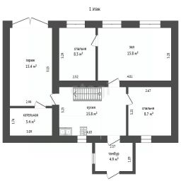 Весь первый этаж оборудован функцией теплого пола, стены - сруб оцилиндрованное бревно.