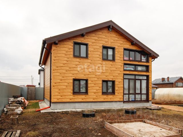 Дом расположен на участке 12 соток , где так же размещены : двухэтажный банный комплекс с баней, комнатой отдыха, бассейном , гараж на две машины, теплица 10 метров, стационарные гряды, газон, кустарники, яблони. Участок огорожен кирпичным забором.