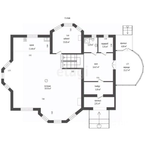 6 авто со смотровой ямой, гараж под навесом, стайка, баня, два дровяника, две теплицы.