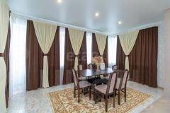 Продается просторный двухэтажный кирпичный коттедж площадью 177 м², построенный в 2009 году. Располагается дом в центре коттеджного поселка, вдали от шумных трасс и развязок. Дом выполнен с дизайнерским ремонтом, что видно по свежим отделкам и качественным материалам. На первом этаже расположены уютные гостиная и кухня с современной бытовой техникой, включая стиральную машину и духовку. В доме пять комнат, каждая из которых оформлена со вкусом. Светлые тона стен и стильные светильники создают атмосферу уюта и комфорта. На втором этаже находится просторная ванная комната с душевой кабиной и ванной, отделанной плиткой светлых тонов. Также имеется санузел на первом этаже. В доме имеется гараж на 2 автомобиля, и небольшой гараж для хранения садовой техники или квадроцикла, а также помещение для хранения садового инвентаря. На территории участка площадью 10 соток расположена баня, где можно расслабиться после долгого дня. Для любителей сада и огорода есть две теплицы и 4 грядки для зелени. На участке имеются плодовые деревья: груша, яблоня, слива, вишня. Из ягод: малина, крыжовник, смородина красная, смородина черная, жимолость. Постелен рулонный газон. На территории двора обустроена детская площадка и бассейн. Дом подключен к центральному водоснабжению и канализации, отопление газовое. Подключено кабельное телевидение. Асфальтированная дорога обеспечивает удобный подъезд. Рядом находится школа, что делает этот дом отличным местом для семейного проживания. В школу ходит школьный автобус, остановка через 2 дома. Все ворота и въезды оборудованы электроприводами. Перед гаражом имеется асфальтированная площадка на 3 машины и еще на 1 возле въезда во двор. Продается дом в Тюмени.