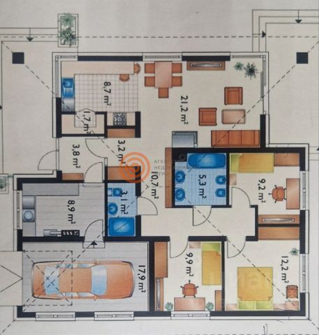 Арт. 127984672 Продается дом 135 кв.м c учаcтком 9 сот. В доме идеальная планировка: 3 спальни площадью 9,10,12 кв м +кухня гостиная 21 кв м, просторный сан.узел , большая гардеробная и тех.комната. Из гостиной выход на террасу. Теплый гараж площадью 17кв м. Конструктив дома: стены керамический кирпич и керамзит-блок. Бетонная плита 300мм с двойным армированием. Техническое наполнение: Водяное отопление: электрокотел, теплые полы по всему дому, радиаторы; септик 10 м, водонагреватель 80 литров, электропроводка 380 вт/15 квт, разводка электропроводки скрытым способом с установкой закладных деталей под установку розеток и выключателей. Газ до участка, центральный водопровод. Забор и автоматические ворота уже установлены на каждом домовладении! Коттеджный поселок находится в 15 минутах от Тюмени. Закрытая территория с видеонаблюдением так же на территории имеется детская площадка. Автобусная остановка возле КП, школьный автобус. Для покупки данного дома можно использовать материнский капитал, а также купить дом по сниженной ставке.
