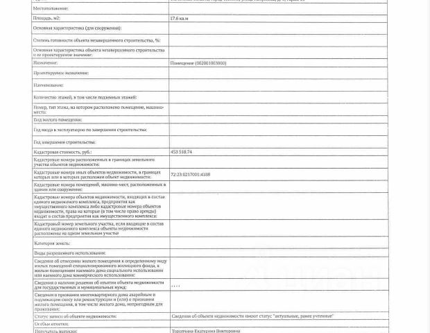 Данные получены с сайта ГИС Торги. Должник: Лукиянов М.А., собственник: Лукиянов М.А. Лот: Нежилое помещение (гараж), площадь 17,6 кв.м., кадастровый номер:72:23:0217001:4219, г. Тюмень, ул. Хохрякова, д. 9, гараж 19, н/ц: 837250 р., з-к: 125588 р, код: 0001, рег. 72-009973;