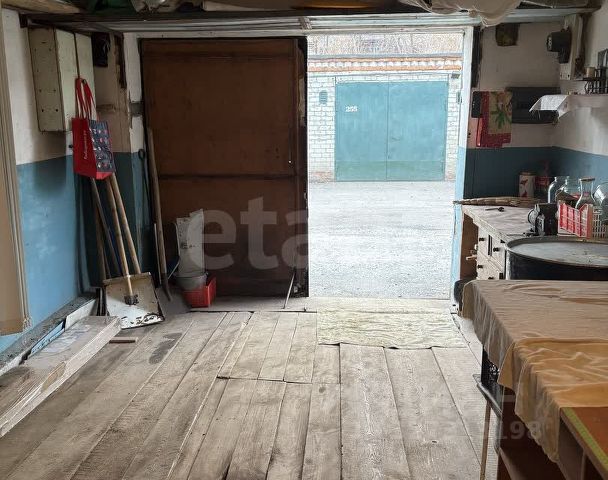 Гараж чистый ухоженный с ремонтом, стоят во всю длину стеллажи.