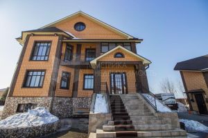 Дом построен из кирпича - самого надёжного и теплого материала, стены выложены в два блока, облицовка кирпичом в два ряда. Перекрытия в доме бетонные.