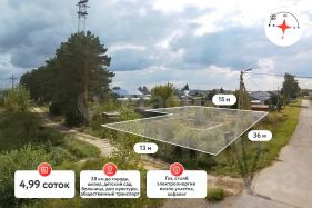 Участок 4,99 соток. Дорога к участку - асфальт. Есть газ. Электрический столб возле участка.