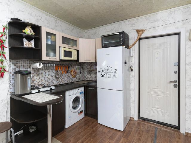 Кухня, хоть и небольшая, но максимально функциональная и стильная. Просторный шкаф на несколько секций (23) обеспечит достаточное место для хранения ваших вещей, а диван размером 18090 станет отличным местом для отдыха. В комнате также есть вместительная настенная полочка для удобного хранения мелочей.