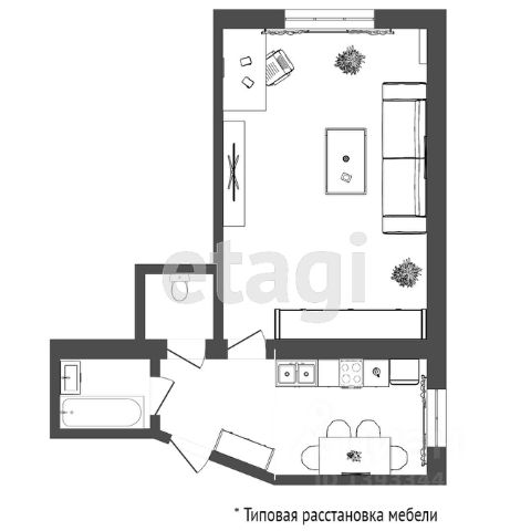 Кухня, хоть и небольшая, но максимально функциональная и стильная. Просторный шкаф на несколько секций (23) обеспечит достаточное место для хранения ваших вещей, а диван размером 18090 станет отличным местом для отдыха. В комнате также есть вместительная настенная полочка для удобного хранения мелочей.
