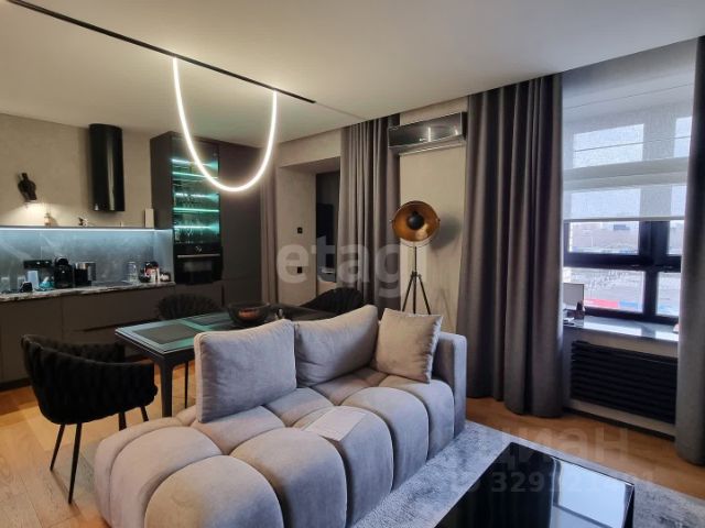 При продаже остается: стильная кухня со встроенной бытовой техникой фирмы Franke, встроенные шкафы, кондиционер, сантехника Raindance Select, полотенцесушитель Terma Fiona с блоком управления, установлена защита от протечек,система фильтрации воды Ecosoft, стол, стулья, диван.