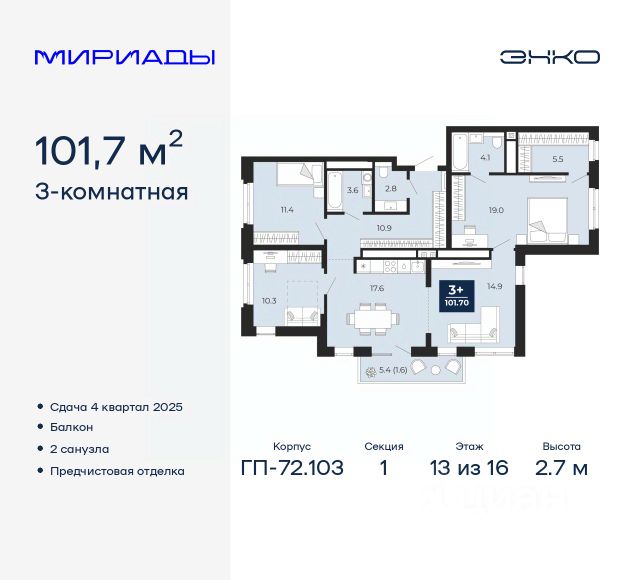 Квартира в счёт первоначального взноса по программе обмена. Информация по телефону, наши менеджеры вам все расскажут! 3-комн. квартира от застройщика с предчистовой отделкой в ЖК "Республики 205" на 2 этаже. Общая площадь: 100.7 кв.м. Высота потолков 2.7 м. Купить квартиру можно с помощью программ покупки от застройщика Брусника: - ипотека по эксклюзивной ставке с помощью в получении положительного кредитного решения через сервис ипотечный брокер; - квартиры в рассрочку без процентов от застройщика Брусника; - обмен квартиры на новую. Получить одобрение ипотеки или рассрочку, а также осуществить обмен квартир можно онлайн. Дом монолитный, многоподъездный, переменной этажности, от 7 до 25 этажей. Квартира находится в 4-й секции высотой 8 этажей в корпусе 3-1. На этаже 5 квартир. В подъезде 1 пассажирский и 1 грузовой лифт. Окончание строительства - 1 квартал 2027 года. Оформление сделки по договору долевого участия. Район Проект расположен в границах улиц Пермякова, Энергетиков, Воровского и Республики. До центра города — 10 минут на машине. Рядом — автомобильная развязка на пересечении улиц Пермякова и Республики. В шаговой доступности есть школы, детские сады, поликлиники, крупный торговый центр, автовокзал и несколько скверов. Проект "Республики 205" — это проект комплексного развития территории, уникальный по своему наполнению. Переосмысляя бывшую территорию завода медицинского оборудования, мы создадим новое место силы — микрорайон, насыщенный деловой, развлекательной, рекреационной, игровой, образовательной и медицинской инфраструктурой. До каждого полезного сервиса здесь можно будет дойти за 15 минут. Локальными центрами "Республики 205" будут общественные пространства — скверы, парки, бульвары и площади. В границах нашего участка мы намерены разместить школу, рассчитанную на 1550 учеников, два детских сада на 300 мест и встроенный детский сад на 100 мест. В одном из цехов бывшего завода расположится креативный кластер "Кузница". Он станет площадкой для нескольких институций — галереи, лектория, книжного магазина-библиотеки, кинобара и точек креативного pop-up-ритейла. Пешеходные бульвары внутри района соединят между собой улицу ресторанов, детские и спортивные площадки, событийную площадь и летний кинотеатр. Идентификатор квартиры по базе застройщика: РСП03. #zss4ff Продается квартира 100 м2 в Тюмени.