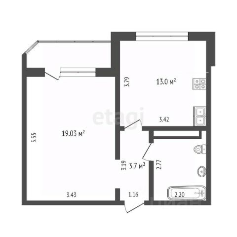 Квартира с кухней-гостиной и одной спальней в кварталах "На Минской". Особенности планировки: предчистовая отделка.
