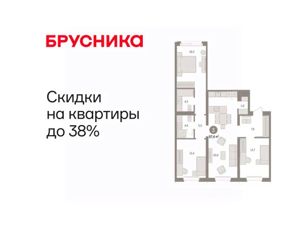 Квартира в счёт первоначального взноса по программе обмена. Звоните, мы вам все подробно расскажем! 3-комн. квартира от застройщика с предчистовой отделкой в Кварталы "На Минской" на 4 этаже. Общая площадь: 91.99 кв.м. Высота потолков 2.7 м. Дом монолитный, многоподъездный, переменной этажности, от 7 до 11 этажей. Квартира находится в 10-й секции высотой 7 этажей в корпусе 2. На этаже 5 квартир. В подъезде 1 пассажирский и 1 грузовой лифт. Окончание строительства - 1 квартал 2027 года. Оформление сделки по договору долевого участия. Продаётся с паркингом. Квартира с кухней-гостиной и тремя спальнями в кварталах "На Минской". Особенности планировки: вид во двор, гардеробная, мастер-спальня, предчистовая отделка, разнесённые спальни, тёплая лоджия. квартиры в нашей базе: МНС02-Ж10.4.4. В сердце города Кварталы "На Минской" находятся в самом центре. За десять минут можно дойти до площади 400-летия Тюмени и Большого Драматического театра, Тюменского индустриального и медицинского университетов, спортивного комплекса "Строймаш", ТРЦ "Гудвин" и "Премьер", Тюменского технопарка. Поблизости много детских садов, школ и поликлиник. Пространство разного опыта Создавая кварталы "На Минской" мы вдохновлялись Хакскими дворами в Берлине и улицей Давида Агмашенебели в Тбилиси. И первые и вторая — яркие разнообразные пространства, сформированные прогрессивными архитекторами и притягивающие городских интеллектуалов. Престижная недвижимость здесь соседствует с барами, ресторанами, креативными кластерами и бюро, дизайнерскими лавками. Полезные улицы Кварталы "На Минской" свяжет сеть променадов, автомобильных проездов и велодорожек. Уличный фронт проекта мы сформируем с помощью аллейной посадки деревьев. Они создадут тень для ресторанов и кафе на первых этажах, визуально отделят проезжую и пешеходную части, снизят объём пыли и уровень шума. Мы реализуем проект в районе с развитой базовой инфраструктурой. И поэтому тщательно подошли к программированию коммерции, посчитав, что её основная задача — "закрывать" более высокие потребности жителей. Здесь может появиться пекарня с вкусными круассанами, турагентство на случай, если захочется перезимовать в Сочи, массажный кабинет, ресторан, когда надоело есть дома и многое другое. #Zs2Auw Квартира до 18 млн. рублей в Тюмени.