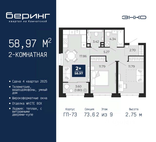 Успейте забронировать по акционной цене! Срок акции ограничен! Стоимость квартиры указана со скидкой, ваша экономия составит 1,820,000 RUB. Обмен квартиры на новую. Предложение от застройщика. Квартира в рассрочку без процентов от застройщика. Эксклюзивные ипотечные условия. Квартира в счёт первоначального взноса по программе обмена. Дом будет сдан в 4 квартале 2025 года. По всем вопросам звоните в офис продаж, наши менеджеры вам все расскажут! Продается двухкомнатная квартира от застройщика с предчистовой отделкой в ЖК "Республики 205" на 14 этаже. Общая площадь: 60.68 кв.м., жилая: 21.4 кв.м., площадь просторной кухни-гостиной: 18.3 кв.м. Квартира угловая, идеально подойдет любителям тишины и панорамных видов. В квартире одна лоджия, один совмещенный и один раздельный санузел. Высота потолков 2.6 м. Купить квартиру можно с помощью программ покупки от застройщика Брусника: - ипотека по эксклюзивной ставке с помощью в получении положительного кредитного решения через сервис ипотечный брокер; - квартиры в рассрочку без процентов от застройщика Брусника; - обмен квартиры на новую. Получить одобрение ипотеки или рассрочку, а также осуществить обмен квартир можно онлайн. Дом монолитный, многоподъездный, переменной этажности, от 9 до 17 этажей. Квартира находится в 1-й секции высотой 17 этажей в корпусе 1. На этаже 7 квартир. В подъезде 1 пассажирский и 1 грузовой лифт. Начало строительства - 2 квартал 2023 года. Окончание строительства - 4 квартал 2025 года. Оформление сделки по договору долевого участия. Район Проект расположен в границах улиц Пермякова, Энергетиков, Воровского и Республики. До центра города — 10 минут на машине. Рядом — автомобильная развязка на пересечении улиц Пермякова и Республики. В шаговой доступности есть школы, детские сады, поликлиники, крупный торговый центр, автовокзал и несколько скверов. Проект "Республики 205" — это проект комплексного развития территории, уникальный по своему наполнению. Переосмысляя бывшую территорию завода медицинского оборудования, мы создадим новое место силы — микрорайон, насыщенный деловой, развлекательной, рекреационной, игровой, образовательной и медицинской инфраструктурой. До каждого полезного сервиса здесь можно будет дойти за 15 минут. Локальными центрами "Республики 205" будут общественные пространства — скверы, парки, бульвары и площади. В границах нашего участка мы намерены разместить школу, рассчитанную на 1550 учеников, два детских сада на 300 мест и встроенный детский сад на 100 мест. В одном из цехов бывшего завода расположится креативный кластер "Кузница". Он станет площадкой для нескольких институций — галереи, лектория, книжного магазина-библиотеки, кинобара и точек креативного pop-up-ритейла. Пешеходные бульвары внутри района соединят между собой улицу ресторанов, детские и спортивные площадки, событийную площадь и летний кинотеатр. Идентификатор квартиры по базе застройщика: МЕД01-01-1-1. #2uaoEs Продам квартиру 60 м2 (квадратных метров) в Тюмени.