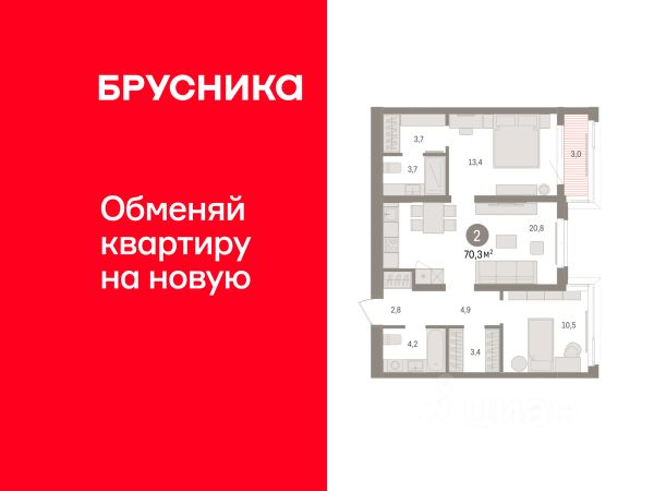 2-комн. квартира от застройщика с предчистовой отделкой в ЖК "Прео" на 1 этаже. Общая площадь: 69.12 кв.м., жилая: 28.43 кв.м., площадь просторной кухни-столовой: 20.74 кв.м. Квартира угловая, окна oбecпeчивaют paвнoмepнoe ocвeщeниe в тeчeниe дня. В квартире два совмещенных санузла. Высота потолков 2.7 м.