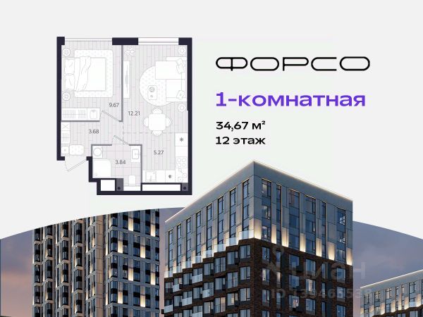 Просторная квартира 42.8кв.метра с удобной, гармоничной планировкой : кухня-гостиная 16.1кв.м))) с выходом на балкон 3.5 кв.м., спальня 13.3 кв., огромный санузел 4.6 кв.м., прихожая 5.3кв.м с нишей под большой шкаф по очень привлекательной цене!