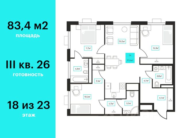 Продаётся 3-комнатная квартира в строящемся доме (Дом 6к1), срок сдачи: III-кв. 2026, общей площадью 83.4 кв.м., на 18 этаже. Новый жилой комплекс "Futuro" от застройщика "newton" расположен в г. Тюмень на Ставропольской улице.