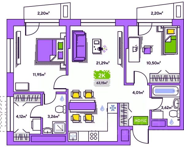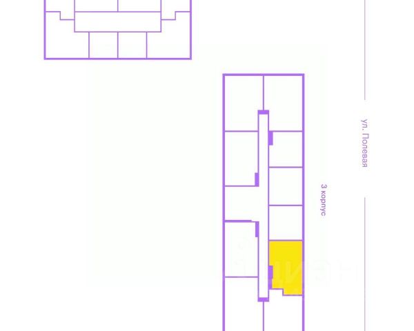 19-этажная архитектурная доминанта с эффектом паруса и камерная секция: французские балконы, сити-хаусы на 1-м этаже, 9 этажей в доме. Уступчатая структура формирует динамичный силуэт — новый акцент ул. Полевая. Металлические балконы создают градиент от тёмного к светлому, большие окна — панорамные виды на город.