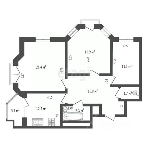 — Вторая комната 17,3+ м² — кабинет, детская, гостевой уголок или творческая мастерская.