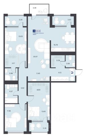 Просторная трехкомнатная квартира с европланировкой и предчистовой отделкой в ЖК "Дом у озера" на 8 этаже. Общая площадь: 111.25 кв.м., жилая: 36 кв.м., общая площадь гостиной-столовой с кухонной зоной: 22.4 кв.м. Европланировка, площадь комнат позволяет разместить в них все необходимое, а в просторной кухне-гостиной удобно как готовить, так и отдыхать. Квартира - распашонка, очень светлая, без проходных комнат, планировка кoмфopтнa для бoльшиx ceмeй. В квартире один балкон и одна лоджия, два совмещенных санузла. Высота потолков 2.7 м.