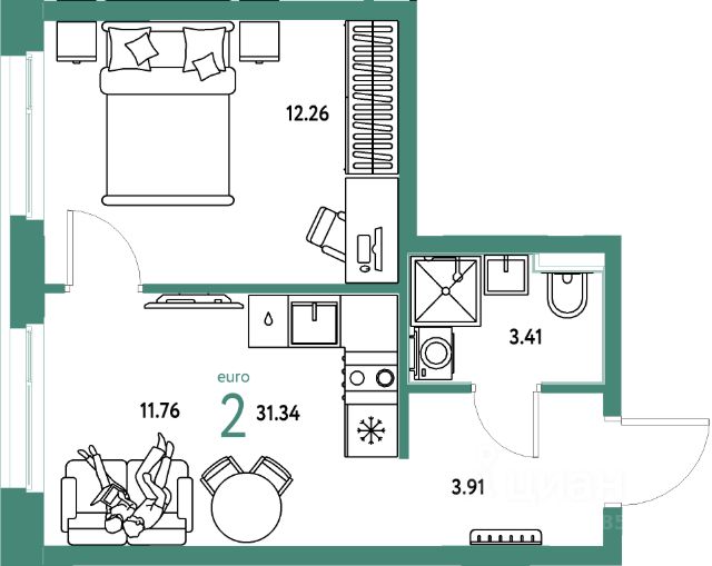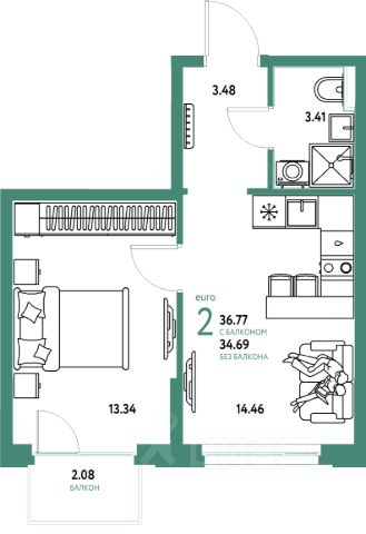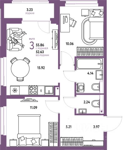 Серия 121 (панель), одна из лучших планировок — с большой застеклённой лоджией (8+ м²).