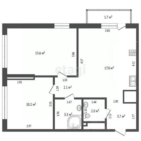 Продам просторную и светлую квартиру формата 2+ с двумя террасами площадью 29 и 5,5 квадратных метров, расположенную в живописном жилом комплексе комфорт класса Гагаринский парк.