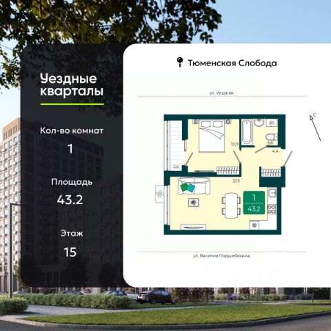 Продается 2-комн. квартира в ЖК "Уездные кварталы" на 6 этаже. Квартира без отделки, после выдачи ключей можно делать ремонт. Общая площадь: 64.6 кв.м., жилая: 22.2 кв.м., площадь просторной кухни-столовой: 19.8 кв.м. Квартира угловая, очень светлая, естественная вентиляция при открытии окон. В квартире одна лоджия, два совмещенных санузла. Высота потолков 2.72 м. Дом монолитный, двухподъездный, переменной этажности, от 9 до 17 этажей. Квартира находится в 1-й секции высотой 17 этажей в корпусе ГП-5.1. На этаже 8 квартир. В подъезде 1 пассажирский и 1 грузовой лифт. Окончание строительства - 4 квартал 2026 года. Оформление сделки по договору долевого участия. "Уездные кварталы" - семейный жилой комплекс комфорт-класса с авторской архитектурой и трехуровневым ландшафтным озеленением. Рядом расположены крупные транспортные развязки, которые позволяют добраться в любую точку города за 15 минут. Жилой комплекс находится в современном районе с развитой инфраструктурой, на первой линии Тюменской Слободы. Вокруг есть всё необходимое в шаговой доступности: новые детские сады и школы, остановки общественного транспорта, магазины, кафе и рестораны, поликлиника, детская школа искусств, парки и спортивный комплекс. На первых этажах квартала расположена собственная коммерческая сеть, а также свой соседский центр. Проект включает 5 домов переменной этажности с более чем 100 планировками - с террасами, французскими балконами и мастер-спальнями. Закрытые дворы оборудованы интерактивными площадками для игр, спортивными зонами и местами тихого отдыха. Вдоль жилого комплекса расположен пешеходный бульвар с сухим фонтаном, а для автомобилей предусмотрен теплый паркинг. Часть квартир можно приобрести с ремонтом, мебелью и техникой от застройщика, а расходы включить в ипотечный платеж. #ZmsDv9