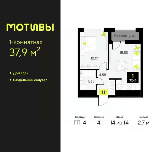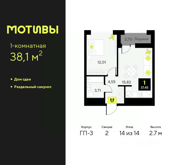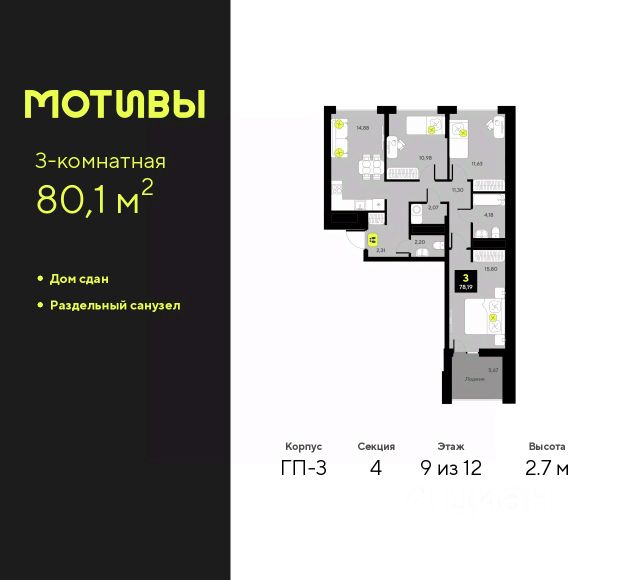 Трехкомнатная квартира в ЖК "Мотивы" на 8 этаже. Общая площадь: 80 кв.м. Высота потолков 2.7 м. Дом монолитный, многоподъездный, переменной этажности, от 5 до 14 этажей. Квартира находится в 1-й секции высотой 14 этажей в корпусе ГП-4. На этаже 5 квартир. В подъезде 1 пассажирский и 1 грузовой лифт. На сегодняшний день строительство окончено, дом сдан в 4 квартале 2024 года. Оформление сделки по договору купли-продажи. Закрытая от автомобилей территория, безопасный двор и камеры видеонаблюдения - гаранты вашего спокойствия. Квартал будет располагать богатой инфраструктурой: на первых этажах разместятся магазины, пекарни, кофейни, пункты выдачи, аптеки, детские центры, цветочные салоны и многое другое, что сделает жизнь поистине комфортной. Рядом находится парк общей площадью почти 5000 м², в котором располагаются локации для игр и отдыха жителей, здесь можно совершить утреннюю пробежку или прогуляться после рабочего дня. В парке есть зона воркаута с тренажерами для взрослых, игровые комплексы с горками и канатный комплекс для детей разных возрастов, качели и лавочки для отдыха, площадки для командных видов спорта и для панна-футбола. В ЖК "Мотивы" всё продумано до мелочей: светлые холлы входных групп, оформленные в едином стиле, просторные колясочные, лапомойки для питомцев. На территории комплекса находятся 2 8-ми этажных паркинга и более 1000 м/м на открытой парковке. Жилой комплекс находится в одном из экологически благоприятных районов Тюмени, недалеко от Плехановского бора. При этом до центра города можно добраться за 15 минут, а до международного аэропорта Рощино за 13 минут. Окончание строительства: ГП 1, 2, 3, 4 сдача до конца 2024 года, ГП 6, 7, 8 сдача 2 квартал 2026 года. #2mFw7b