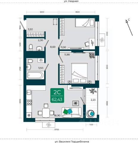 2-комн. квартира в ЖК "Уездные кварталы" на 16 этаже. Квартира без отделки, полностью готова к ремонту. Общая площадь: 62.43 кв.м., жилая: 23.4 кв.м., площадь просторной кухни-столовой: 18.9 кв.м. Квартира угловая, очень светлая, естественная вентиляция при открытии окон. В квартире одна лоджия, один совмещенный и один раздельный санузел. Высота потолков 2.6 м. Квартира находится в корпусе ГП-4. Дом монолитный, одноподъездный, высотой 23 этажа. На этаже 10 квартир. В подъезде 1 пассажирский и 1 грузовой лифт. Строительство завершено, дом сдан в 3 квартале 2025 года. Оформление сделки по договору купли-продажи. "Уездные кварталы" - семейный жилой комплекс комфорт-класса с авторской архитектурой и трехуровневым ландшафтным озеленением. Рядом расположены крупные транспортные развязки, которые позволяют добраться в любую точку города за 15 минут. Жилой комплекс находится в современном районе с развитой инфраструктурой, на первой линии Тюменской Слободы. Вокруг есть всё необходимое в шаговой доступности: новые детские сады и школы, остановки общественного транспорта, магазины, кафе и рестораны, поликлиника, детская школа искусств, парки и спортивный комплекс. На первых этажах квартала расположена собственная коммерческая сеть, а также свой соседский центр. Проект включает 5 домов переменной этажности с более чем 100 планировками - с террасами, французскими балконами и мастер-спальнями. Закрытые дворы оборудованы интерактивными площадками для игр, спортивными зонами и местами тихого отдыха. Вдоль жилого комплекса расположен пешеходный бульвар с сухим фонтаном, а для автомобилей предусмотрен теплый паркинг. Часть квартир можно приобрести с ремонтом, мебелью и техникой от застройщика, а расходы включить в ипотечный платеж. #zMgbUf