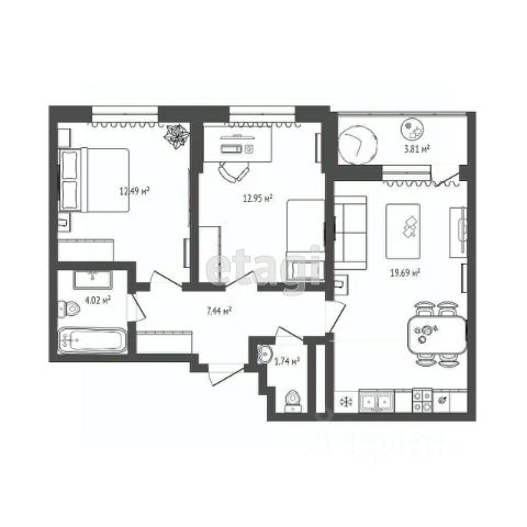 1-комн. квартира с предчистовой отделкой в ЖК "Республики 205" на 9 этаже. Общая площадь: 35.47 кв.м., жилая: 9 кв.м., площадь просторной кухни-гостиной: 16 кв.м. Все окна выходят на одну сторону. В квартире один балкон, один совмещенный санузел. Высота потолков 2.7 м.
