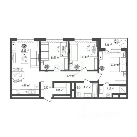 Покупай сейчас - плати потом! На данный объект доступна рассрочка на выгодных условиях **Цена снижена!!!** Представляю вашему вниманию уютную полноценную квартиру формата 2+ в доме комфорт-класса в квартале "На Гастелло"! - **Этаж:** 8 - **Площадь:** 81.3 кв.м. Квартал "На Гастелло" расположен в Калининском районе Тюмени. До центра города всего 10-15 минут на автомобиле, что обеспечивает легкий доступ к основным достопримечательностям — Цветному бульвару, Набережной и Мосту влюблённых. **О доме:** - Свежий монолитный дом от застройщика "Брусника". - Закрытый двор с зоной для отдыха, где можно заниматься спортом или просто наслаждаться природой. - Около 70% дворовой площади занимают зеленые насаждения: деревья, кустарники и цветы. **Удобства:** - Сквозные подъезды с прозрачными входными группами. - Бесключевой доступ, отапливаемая входная группа, колясочная и место для хранения велосипедов. - Современные бесшумные лифты. **Планировка квартиры:** - Просторная кухня-гостинная 28 кв.м. с выходом на террасу. - Квадратный зал более 11 кв.м. - Мастер спальня 13 кв.м. с гардеробной. - Раздельный санузел. Эта планировка легко может быть перепланирована в 3-комнатную квартиру. Высокие потолки 2.75 м создают ощущение простора и света. **Отличная цена за квадратный метр среди аналогичных предложений!** К сделке готовы. Звоните, организую показ в удобное для вас время! МЫ ГАРАНТИРУЕМ ФИНАНСОВУЮ БЕЗОПАСНОСТЬ ДЛЯ НАШИХ КЛИЕНТОВ. Код пользователя: 158627 Номер в базе: 1508149