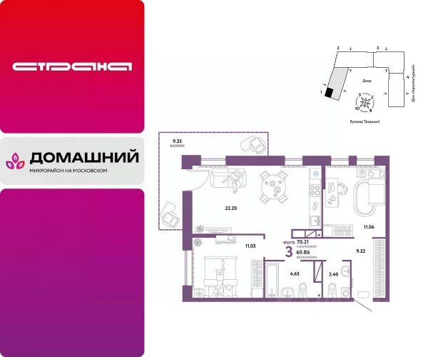 Объявление от застройщика Страна Девелопмент. Покупка квартиры защищена банком. Продается 2комнатная квартира на 5 этаже от застройщика Страна Девелопмент. Площадь квартиры 42,35 кв. м. Стоимость указана без учета акций. О ПРOЕКТЕ Mикpорайон "Домaшний" — этo 6 очередей стpоитeльcтвa, 24 дома пеpемeннoй этажнoсти. Каждый дом уникальный. Внутри микрорайона появится огромный пешеходный бульвар — бульвар Традиций. Центром притяжения станут открытые пространства для отдыха жителей и гостей микрорайона, которые легко меняются под сезонные сценарии отдыха: новогодняя елка, ярмарки, кинопоказы и т.д. У каждого дома обустроен приватный двор с зонами для активного и спокойного отдыха. В активной зоне детские разновозрастные площадки с горками, песочницами и качелями, воркаут-зоны. В спокойной — скамейки, мини-амфитеатры, закрытые перголы. Уютной атмосферу сделает обильное озеленение и освещение "домашними" торшерами. ОТДЕЛКА Квартиры сдаются с предчистовой отделкой. Все грязные работы выполнены: произведена разводка электричества и отопления; выполнена стяжка пола; стены выровнены "под маяк". В квартире установлены розетки, выключатели и радиаторы. На входе — надежная стальная дверь. Вам остается только выбрать материалы и начать ремонт Доступна опция "Ремонт от застройщика". Стоимость можно включить в ипотеку. КУХНЯ С ТЕХНИКОЙ Теперь дополнительно к ремонту можно заказать кухню со встроенной техникой. Эргономику и функциональное наполнение разработали под каждую планировку. ПОЛНАЯ МЕБЛИРОВКА Больше не нужно тратить время даже на подбор, доставку и сборку мебели.Вы можете включить в стоимость квартиры с ремонтом полную меблировку. - Что входит в меблировку? - Кухня с техникой и сантехникой - Диван - Кровать - Шкаф в спальне - Шкаф в прихожей Цены на квартиры указаны без учета скидок. На консультации менеджер подскажет, какие акции действуют, и как получить одобрение по ипотеке с низкой ставкой. Более подробная информация по телефону. Застройщик ООО СЗ "Страна Запад". Проектные декларации на сайте наш.дом.рф.