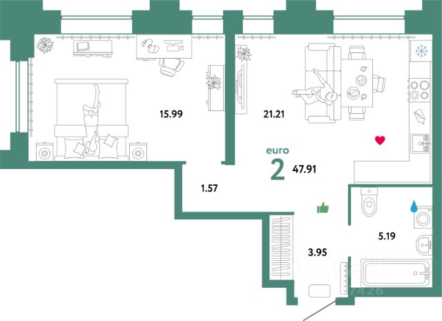 Продаётся 2-комнатная квартира в сданном доме (Тимофея Чаркова, 93 (ГП-9 Юпитер)), срок сдачи: III-кв. 2025, общей площадью 40.95 кв.м., на 26 этаже. Проект микрорайона "Звездный городок" представляет собой застройку, состоящую из кирпичных зданий переменной этажности. Застройщиком спроектированы квартиры с различными планировками - от студий до четырехкомнатных общей площадью от 28,07 до 131,51 кв. м. Отделочные работы не осуществляются. На огороженной территории организовано видеонаблюдение, детские и спортивные площадки, зоны отдыха, а также пешеходный бульвар с фонтаном и роллердромом. Предусмотрены гостевые автостоянки и охраняемый двухуровневый подземный паркинг. На первых этажах разместятся детский сад и частная школа, медицинские учреждения, химчистка, магазины, кафе и отделения банков. Будет построен торгово-развлекательный и фитнес-центр с тренажерами и бассейном.