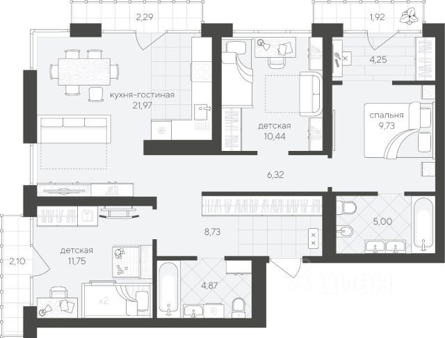 Продаётся 1-комнатная квартира в строящемся доме (В5.3 (Малкова, 19)), срок сдачи: III-кв. 2026, общей площадью 45.71 кв.м., на 1 этаже. Компания 4D приступила к строительству нового жилого комплекса "Гранд квартал". Новый ЖК находится в зеленой зоне Калининского района, южнее микрорайона Тюменская слобода.