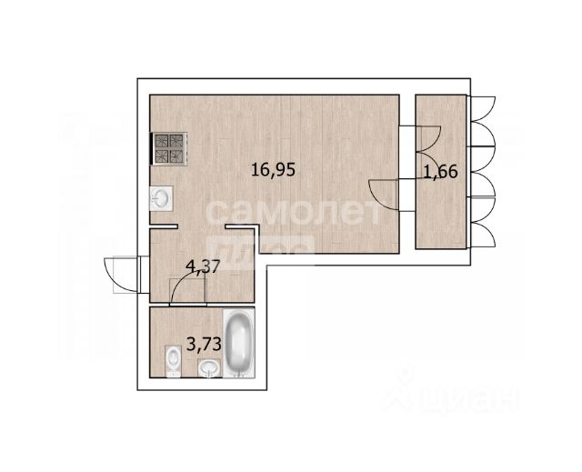 В КВАРТИРЕ сделан частично ремонт: санузел с окном , на полу и стенах - керамогранит. В х и кухне-гостиной кварц виниловая плитка, в прихожей - керамогранит.