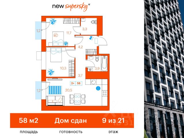 Продается полноценная однокомнатная квартира в шикарном ЖК комфорт класса SuperSky, расположенном в 15 минутах от центра города. Дом сдается летом 2025 года.