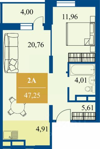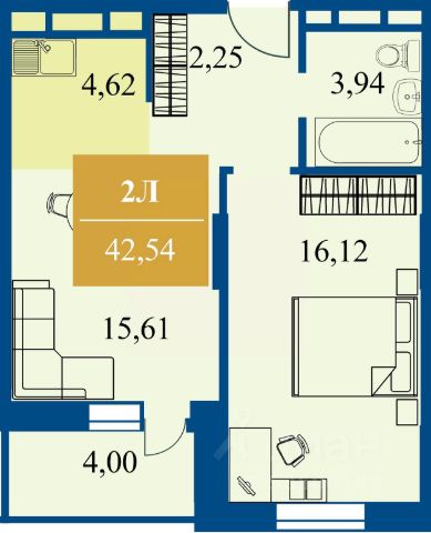 Общая площадь - 61м2