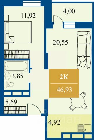 О квартире: популярная планировка- две изолированные комнаты+ кухня-гостиная