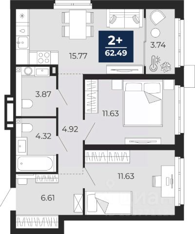 При покупке этой квартиры за наличный расчет предоставляется скидка 5% Прямая продажа от застройщика! Продается однокомнатная квартира в строящемся ЖК "Меридиан Слобода", срок сдачи: I-кв. 2027, общей площадью 41.95 м², на 8 этаже из 21. Площадь кухни — 17.02 м². "Меридиан Слобода" расположен в южной части (зеленой зоне) Тюменской Слободы рядом со строящимся Комарово парком в границах улиц Заполярная и Спасская. В районе расположены все необходимые объекты социальной инфраструктуры. ЖК "Меридиан Слобода" состоит из двух домов переменной этажности от 15 до 20 с отделкой фасадов разной фактуры. Главная особенность ЖК — свой собственный хвойный сквер прямо во дворе. Территория сквера будет оформлена в минималистичном стиле, главное правило которого сохранение экосистемы и гармоничное встраивание объектов инфраструктуры в природную среду. Здесь будут дорожки из деревянных настилов, зоны отдыха, отель для птиц. Квартиры сдаются с предчистовой отделкой или с ремонтом. О возможности приобретения квартиры с ремонтом уточняйте у менеджеров отдела продаж. Преимущества ЖК: — тёплый тамбур с домофоном на второй двери — дизайнерское оформление подъездов — колясочная и парковка для велосипедов — лапомойка — кладовые на цокольном этаже со входом через подъезд — закрытый двор — зоны для игр и спорта во дворе