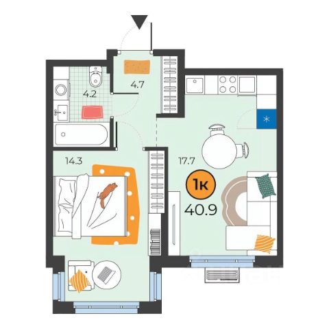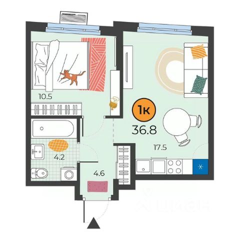 балкон - 4,2 кв.м.,