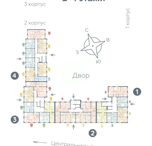 • В домах всего 4 этажа, но в каждом подъезде есть современный лифт.