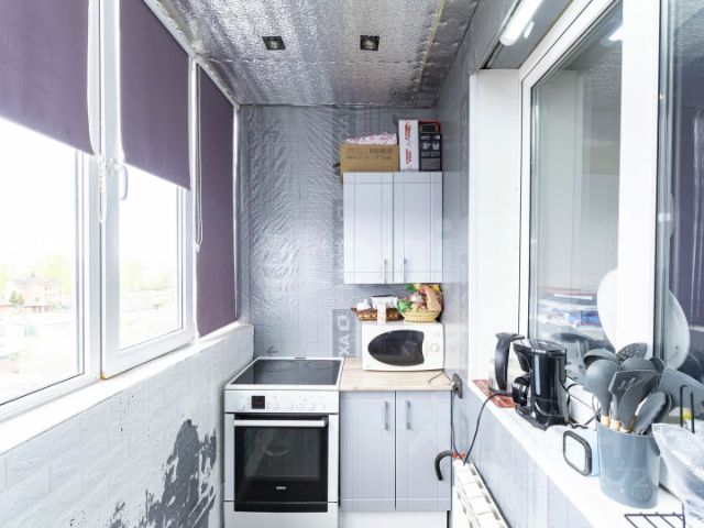 Везде натяжные потолки, на полу линолеум, на стенах обои под покраску. В квартире имеется 3 санузла (2 туалета, 1 ванная комната), на полу и стенах плитка. В квартире 3 балкона.