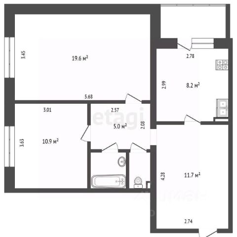 Объект отличается продуманной планировкой: изолированные комнаты расположены по разным сторонам, что обеспечивает приватность, а просторная кухня 8,6 кв.м позволяет удобно разместить обеденную зону.
