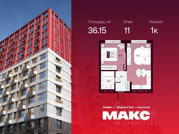 Продаётся квартира площадью 44.64 м2 в жилом комплексе "Дабл-Дабл". Квартира находится на 1 этаже, жилая площадь квартиры 10.11 м2, площадь просторной кухни — 17.3 м2. Среди особенностей планировки — изолированные комнаты с окнами на одну сторону, 1 совмещённый санузел.