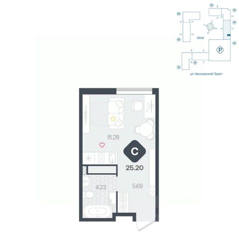 Продаётся квартира площадью 24.30 м2 в жилом комплексе "Айрис". Квартира находится на 2 этаже дома, который будет введен в эксплуатацию в 3 квартале 2027 года. Жилая площадь квартиры 9.50 м2, площадь просторной кухни — 5.80 м2. Среди особенностей планировки — изолированные комнаты с окнами на одну сторону, 1 совмещённый санузел. Жилой комплекс "Айрис" — это: фиджитал-квартал в Тюмени дома высотой от 7 до 25 этажей квартиры с системой "Умный дом" цифровые технологии как элемент благоустройства Срок сдачи — III кв. 2027 Окружение В нескольких минутах ходьбы от дома — парк "Комарово" с волейбольной площадкой, открытым кинотеатром, зонами для барбекю и катком. Неподалеку от Airis находится центр иппотерапии, где можно покататься на лошадях и взять уроки верховой езды. На территории Airis появится собственный парк с прогулочными аллеями. Инфраструктура В 5-10 минутах от квартала открыты 2 детских сада и гимназия. На шопинг можно отправиться в торговые комплексы "Колумб" и "Кристалл" — они находятся недалеко от дома. Благоустройство Уютный двор — приватное пространство для жителей. В беседках можно будет почитать книгу в тишине, а в тени деревьев устроиться на пикник. На крыше многоуровневого паркинга будет лаунж-зона с кинотеатром, баскетбольная площадка и воркаут-пространство, где можно позаниматься с виртуальным тренером — достаточно отсканировать код. Лобби Интерьеры лобби выполнены в пастельных тонах с элементами фиджитал-решений. Для отдыха и ожидания гостей создана лаунж-зона. Также есть гостевые санузлы. Колясочные Возвращайтесь налегке после прогулки с малышом — оставить коляску можно в специальном помещении на первом этаже. Кладовые Для сезонных и габаритных вещей предусмотрены отдельные кладовые на цокольном этаже. В каждом помещении уже проведено электричество и выполнена стяжка пола. Паркинг На территории — два многоуровневых наземных паркинга. Один из них примыкает к домам — из него можно напрямую пройти в парадные. Планировки Планировки квартала — от компактной студии до сити-хауса с собственным палисадником — соответствуют любым жизненным сценариям. Можно выбрать квартиры с террасами и готовыми дизайнерскими интерьерами. Квартира с отделкой в Тюменской области.