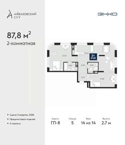 * высота потолков -2.8 м2