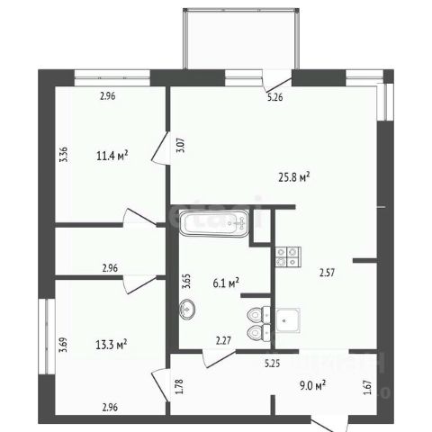 * жилая площадь —52м2