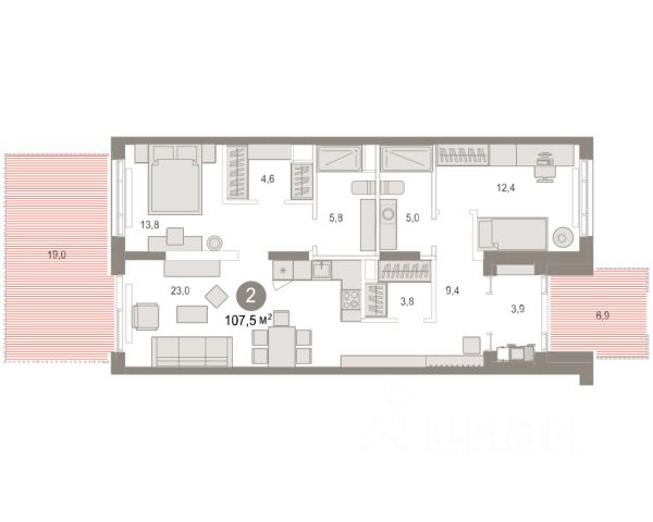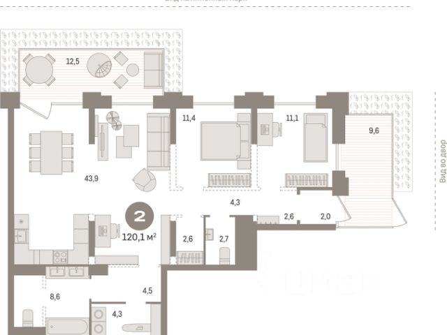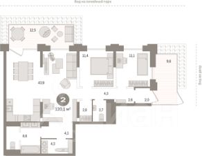 Двухуровневая квартира с кухней-гостиной и четырьмя спальнями в Октябрьском на Туре. Особенности планировки: вид во двор, второй санузел, двухуровневая, мастер-спальня, окна в пол, отдельный вход, панорамное остекление, постирочная, предчистовая отделка, разнесённые спальни, терраса. квартиры в нашей базе: ОКТ-08-2-2.1.2. Район Проект расположен на берегу реки, в одном из самых живописных и экологичных районов Тюмени. За последние годы облик района изменился. По соседству с индивидуальной застройкой выросли многоквартирные дома. При проектировании "Октябрьского на Туре" нашей приоритетной задачей стало сохранение природного ландшафта: мы постарались деликатно вписать в него современную архитектуру. Квартал удачно расположен с точки зрения дорожной инфраструктуры. На автомобиле путь до центра города составит 15 минут. Добраться до набережной и главных тюменских достопримечательностей можно и на общественном транспорте. В пешей доступности находится автобусная остановка. Проект По мастер-плану здесь будет восемь домов. Ядро застройки составляют замкнутые кварталы переменной этажности. Их высотность понижается по мере приближения к реке. На углах участка мы разместили башни-доминанты. Одной из достопримечательностей квартала станет парк на Туре — здесь появится зеленая зона протяженностью около 6 километров для пеших и велопрогулок. Смысловая ось квартала — широкая главная улица с высаженными вдоль неё высокими деревьями. Они создают тень и работают как шумо- и пылезащитные экраны. Это место сосредоточения основных пешеходных и транспортных потоков, на сторону которых мы ориентировали большинство коммерческих помещений. Отсюда жители могут свернуть на тихие соседские улицы и попасть на внутриквартальную площадь — ещё одну точку притяжения. #zZD2FZ