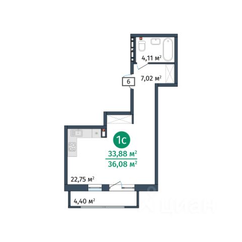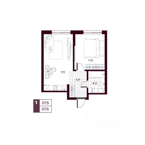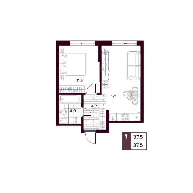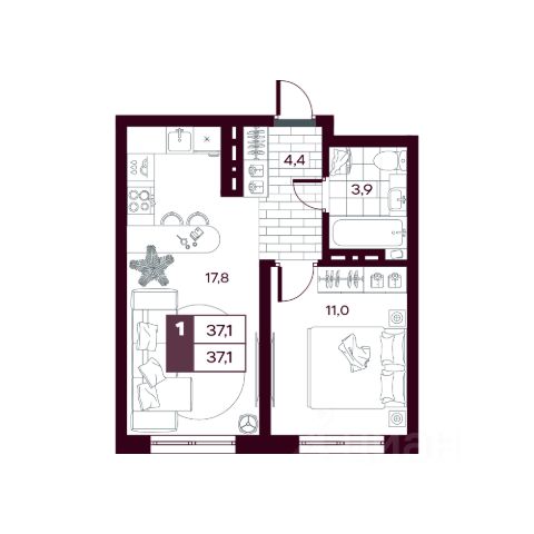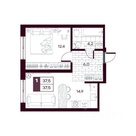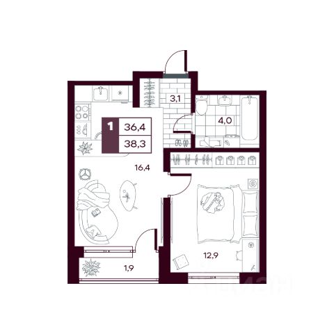 • ✅ Минимальная площадь: 35,4 м²