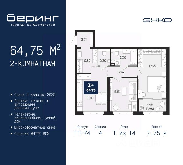 🔷 Средняя цена за м2:125,8 тыс. руб./м²
