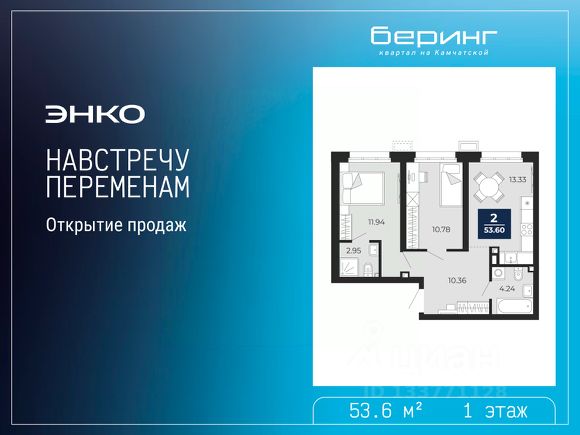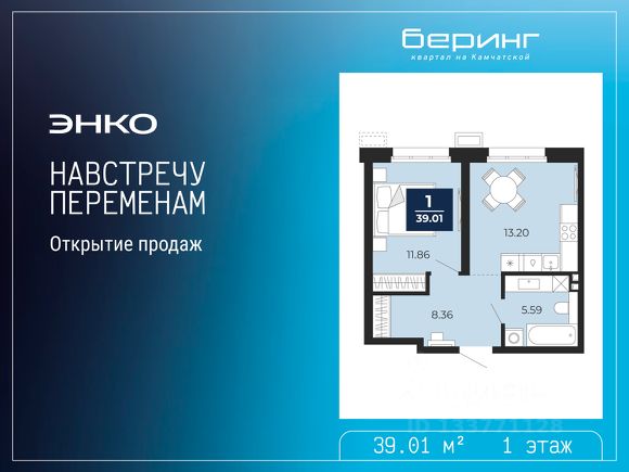 Спешите забронировать на этих условиях, предложение ограничено! Стоимость квартиры указана со скидкой, ваша экономия составит 820,463 руб. Звоните, наши менеджеры вам все расскажут. Двухкомнатная квартира от застройщика с предчистовой отделкой в ЖК "Беринг" на 1 этаже. Общая площадь: 66.59 кв.м., жилая: 21.58 кв.м., площадь просторной кухни-столовой: 21.4 кв.м. Комнаты изолированные, все окна выходят на одну сторону. В квартире один совмещенный и один раздельный санузел. Высота потолков 2.75 м. Дом монолитный, многоподъездный, переменной этажности, от 6 до 22 этажей. Квартира находится в 4-й секции высотой 12 этажей в корпусе ГП-73. На этаже 8 квартир. В подъезде 1 пассажирский и 1 грузовой лифт. Строительство завершено, дом сдан в 1 квартале 2026 года. Оформление сделки по договору купли-продажи. Подобно знаменитому исследователю, мы чувствуем себя первооткрывателями этой локации. Хотим показать новую суть места, сформировать для вас жизненный опыт, которого ещё не было. Беринг — район зелёного цвета. Беринг — район, который откроется вам с другой стороны. Впечатлит новым уровнем комфорта и качеством жизни. Беринг — открытие на карте города. Первый квартал расположен в районе Тура, в границах улиц: Камчатская Западносибирская Энтузиастов. Вокруг уже есть всё для того, чтобы ежедневная рутина была лишь частью жизни и не доставляла дискомфорта. Школы и детские сады, магазины и аптеки, поликлиника, места для семейного отдыха, пеших и велопрогулок, и даже рыбалки. Масштабное озеленение дворов — визитная карточка ЭНКО и ваш оазис спокойствия, чтобы отвлечься от повседневности. Раскидистые деревья, кустарники, травы и цветы — осталось остановиться, вдохнуть и расслабиться, глядя на эту природную красоту. Стилистика подъездов продолжает концепцию Беринга, вдохновлённого Камчаткой: сдержанный, но при этом впечатляющий дизайн соседствует с удобством и функциональностью.